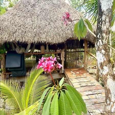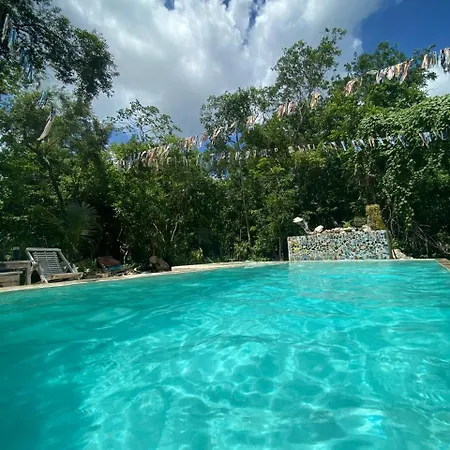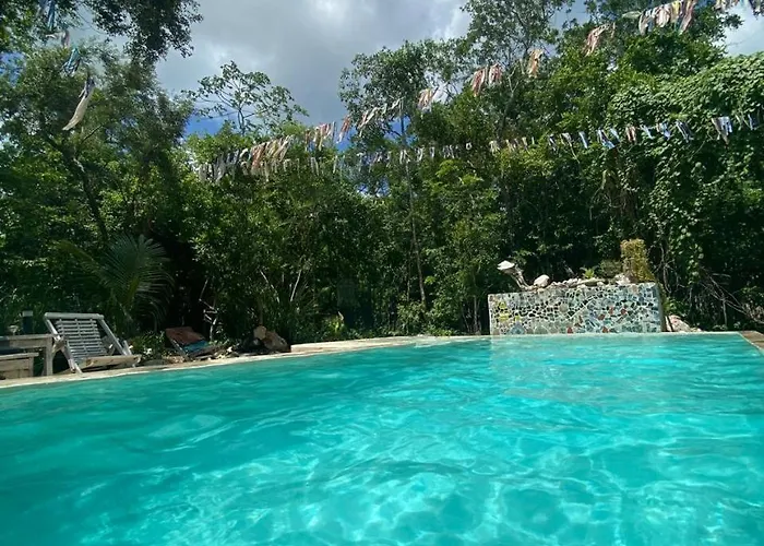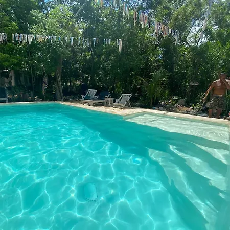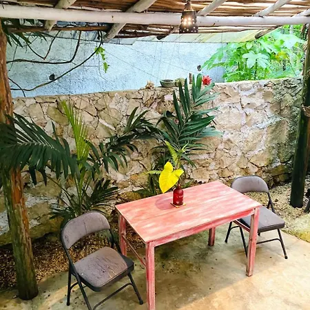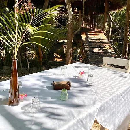 El hotel tiene una excelente ubicación y está rodeado de un jardín. Tulum está a unos 15 minutos en coche de la pensión.
